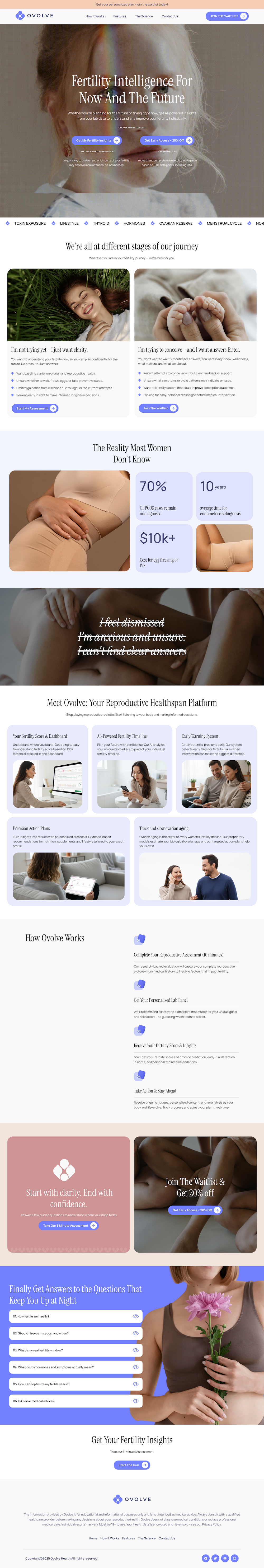 Ovolve Health, a pre-launch women’s fertility startup, needed to build momentum quickly. Their landing page wasn’t converting, messaging was unclear, and they lacked the infrastructure to grow a waitlist or social presence. With limited internal resources and a tight timeline, they needed a fast, effective go-to-market plan.