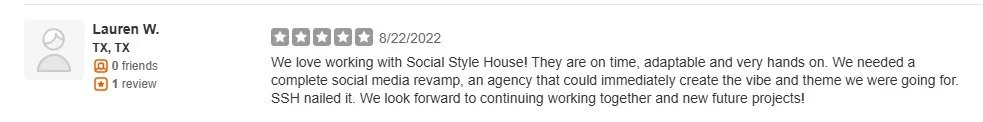 "We love working with Social Style House! They are on time, adaptable and very hands on. We needed a complete social media revamp, an agency that could immediately create the vibe and theme we were going for. SSH nailed it. We look forward to continuing working together and new future projects!"