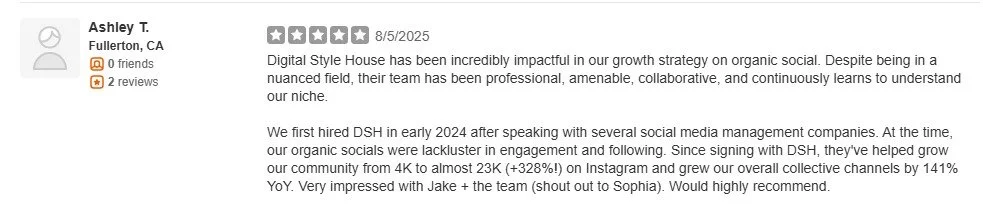 If you’re searching for Digital Style House reviews, Ashley’s experience shows how our team can revitalize social media channels, grow audiences, and strengthen your brand presence—even in specialized or nuanced industries.